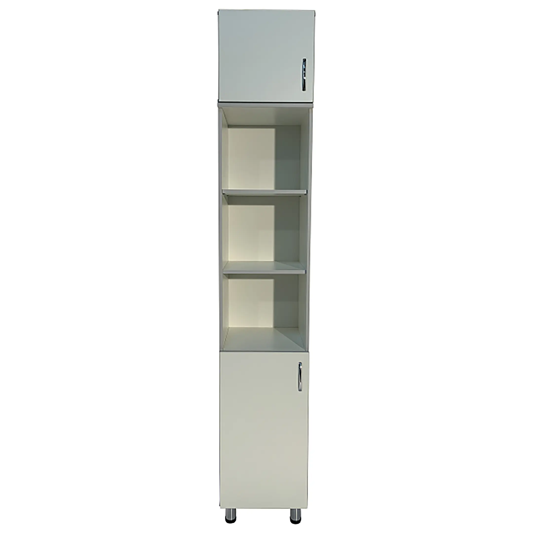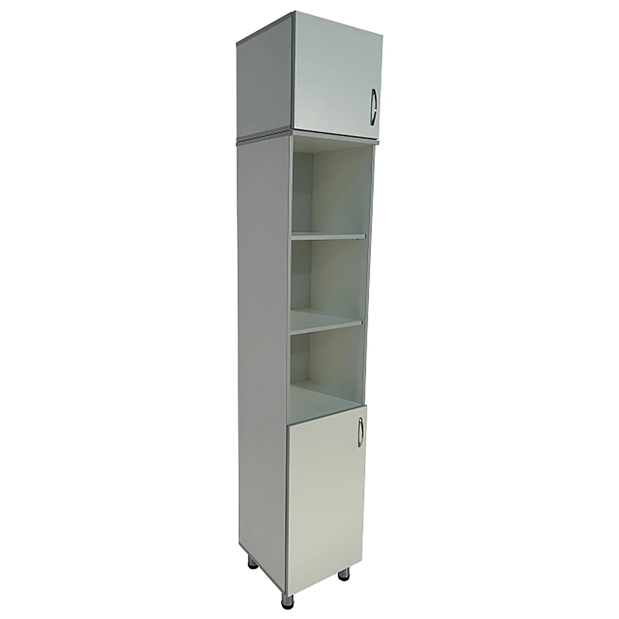 • Ниша шкафа разделена на отделения, что помогает эффективно организовать хранение и быстро находить необходимые материалы.