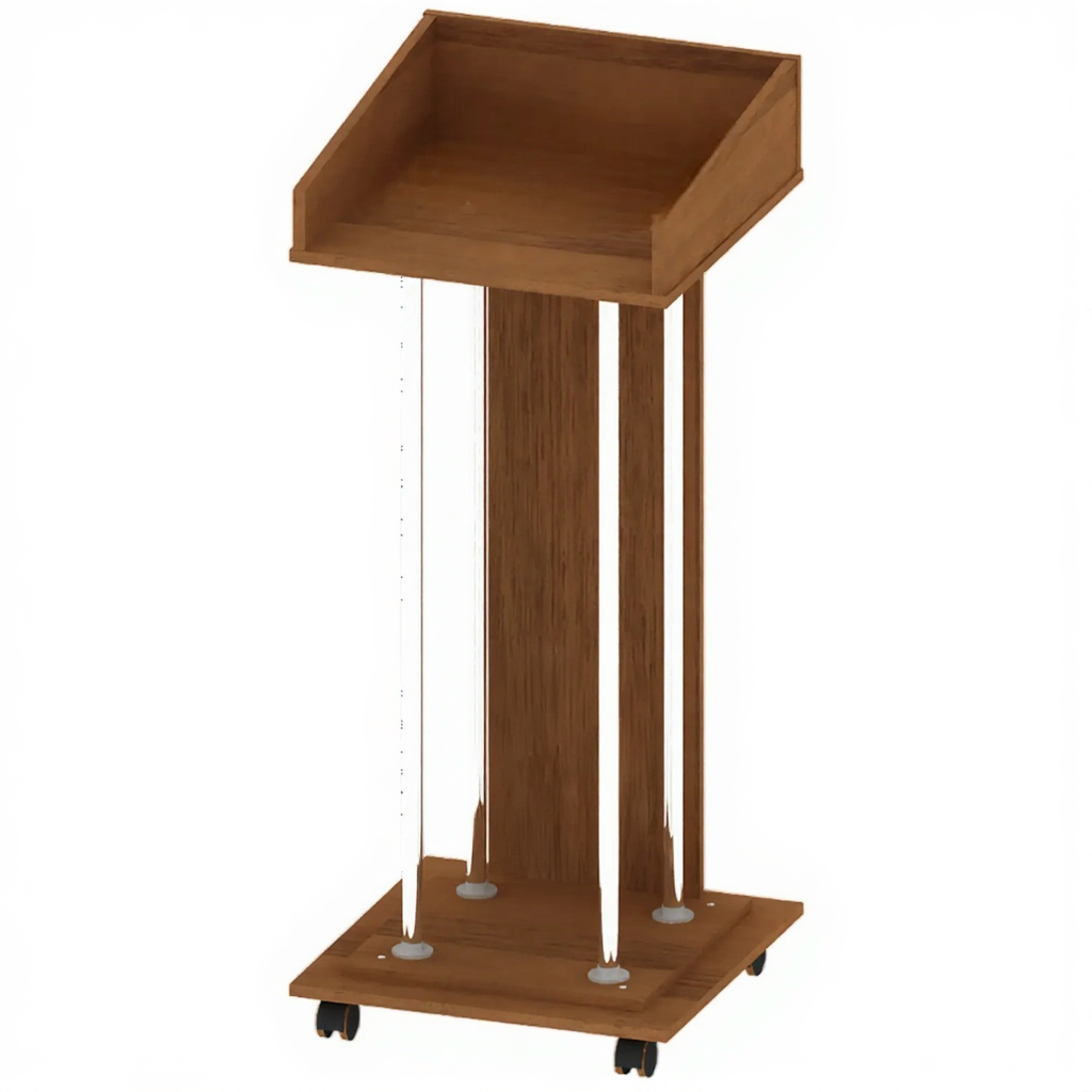 Трибуна ТР-ШП-5, Ноче Экко — это современное и надежное решение для оснащения актовых залов, конференц-залов, учебных аудиторий и лекционных помещений. Модель выполнена из высококачественного ЛДСП 16 мм с хромированными трубами, что обеспечивает прочность и презентабельный внешний вид. Все торцы деталей обработаны кромкой ПВХ 2 мм для защиты от сколов и влаги. Трибуна оснащена колесными опорами со стопором, что позволяет легко перемещать ее и надежно фиксировать на месте во время выступления.