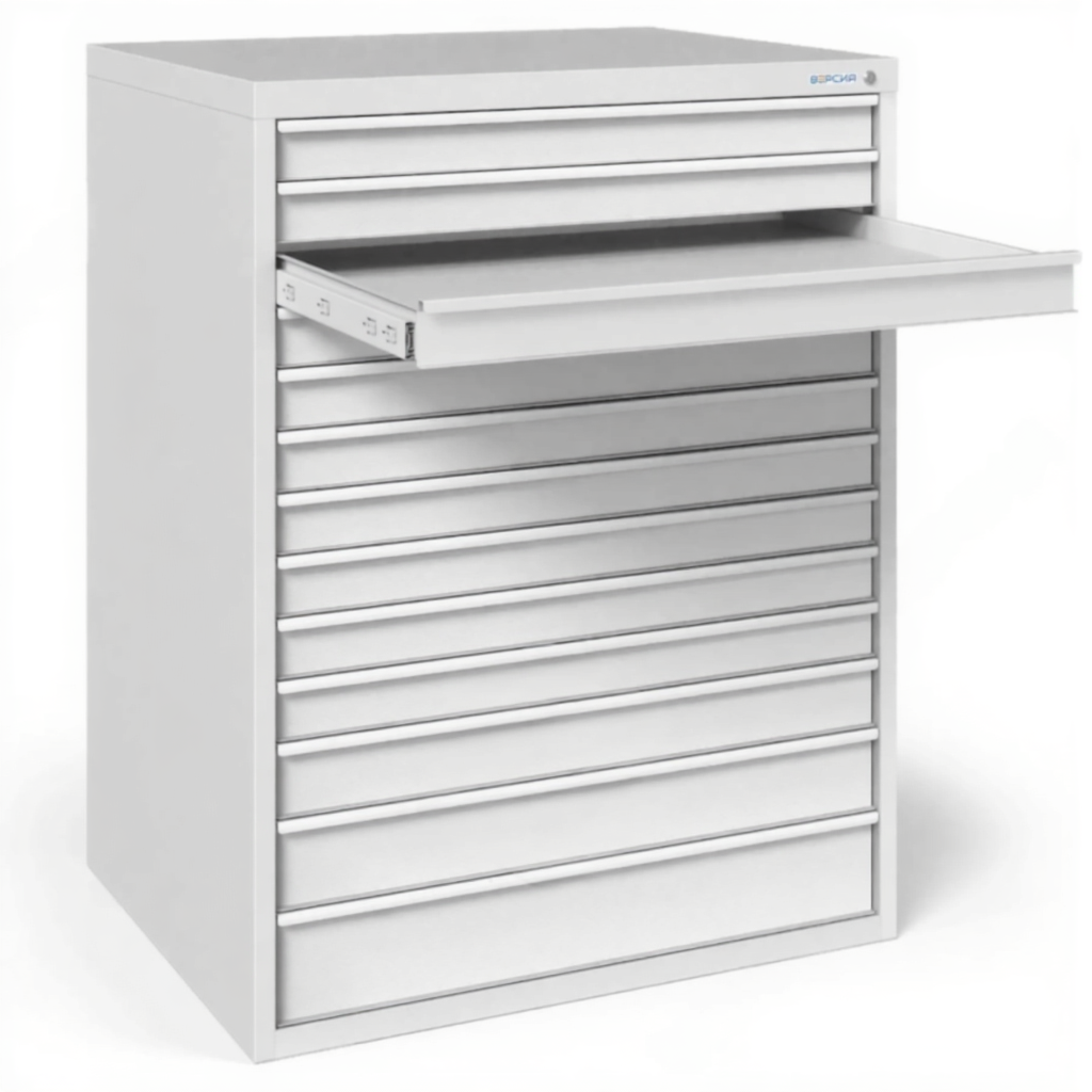 - Большая вместимость для рабочего и архивного хранения — тринадцать выдвижных металлических планшетов позволяют систематизировать и хранить значительный массив чертежей формата А1 (594x841 мм). Это оптимальное решение для организации отраслевого архива, коллекции текущих проектов подразделения или учебных материалов целого курса.