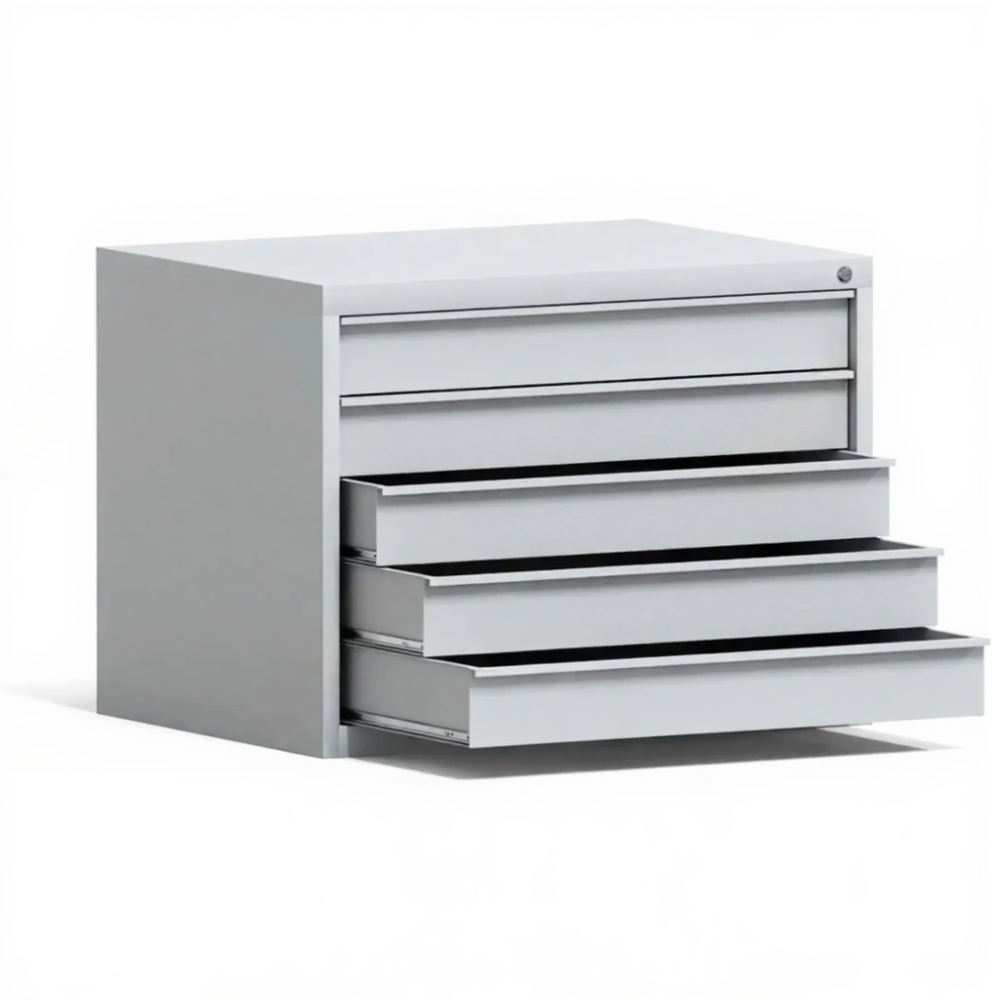 Шкаф картотечный ШКР-5, формат А1 — это функциональное и компактное решение для систематизированного хранения, защиты и удобного доступа к чертежам, проектным планам, схемам и другой крупноформатной документации в конструкторских бюро, учебных классах, архитектурных бюро и проектных отделах. Модель с пятью выдвижными планшетами обеспечивает порядок и сохранность для документов формата А1.