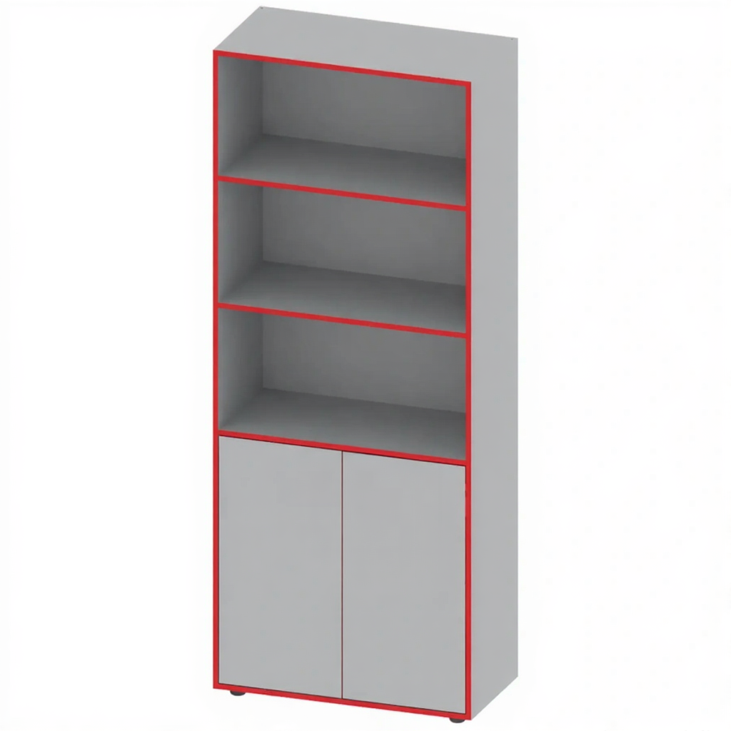 - Практичность для розничной торговли — идеально подходит для магазинов, где важно и показать товар лицом (на открытых полках), и иметь удобный доступ к упаковке или резерву (в закрытых секциях).