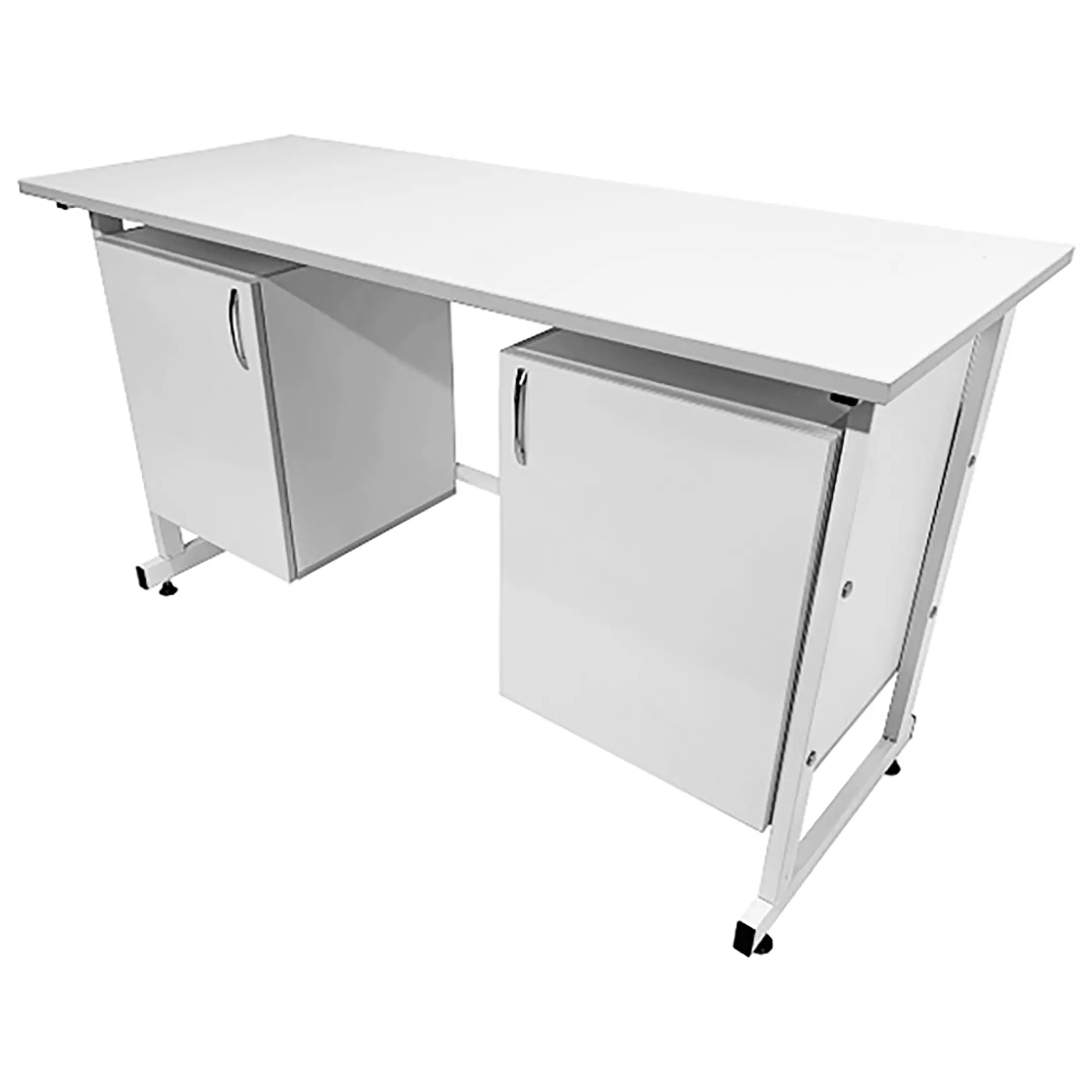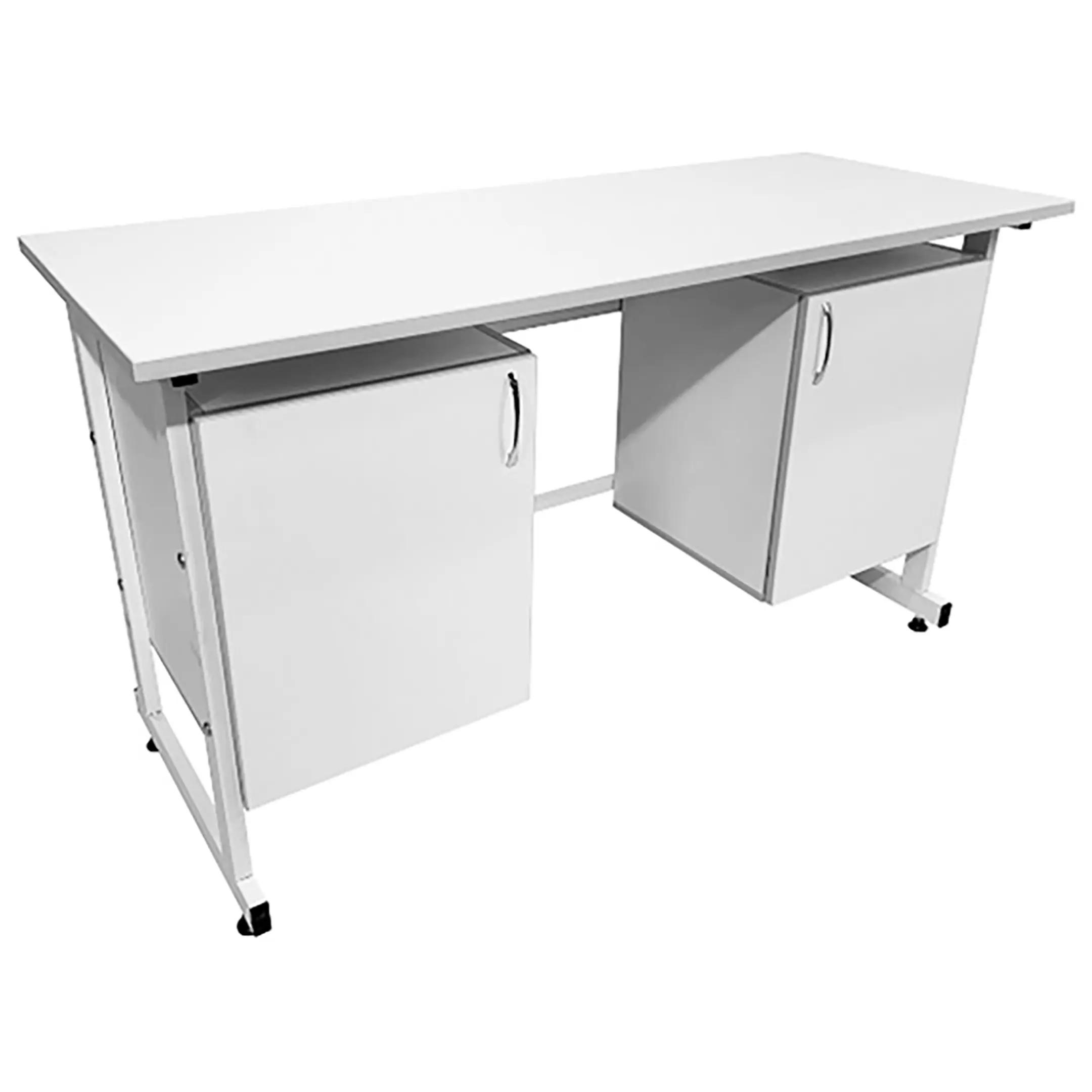 Стол лабораторный СЛ 12.005 (белый) — это функциональное и элегантное решение для организации рабочего места сотрудников в лабораториях. Модель оснащена двумя подвесными тумбами с распашными дверками и полками внутри. Каркас выполнен из стального профиля, столешница из ЛДСП толщиной 22 мм.