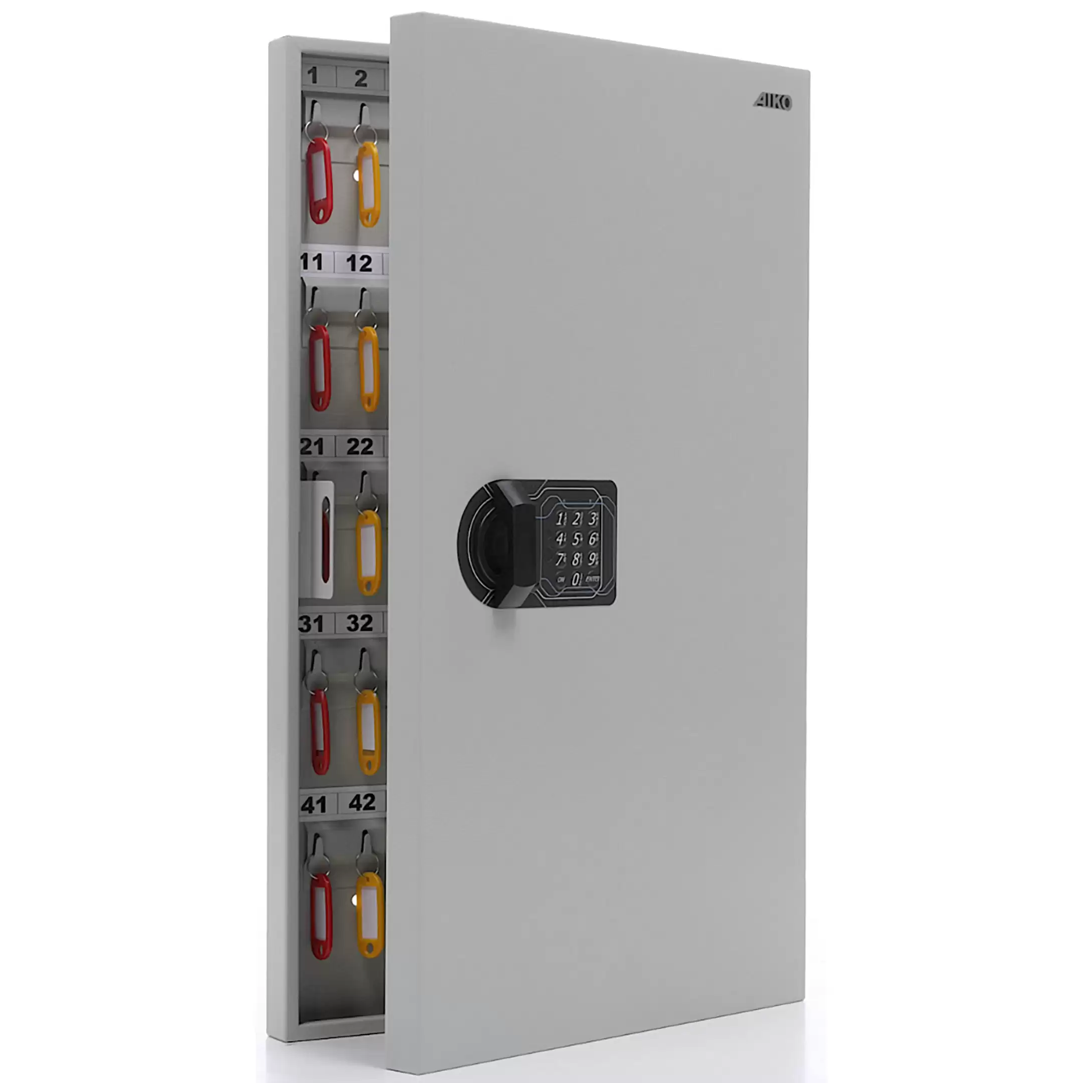 Ключница KEY-95EL (с брелками) — это вместительная настенная система для организованного хранения и защиты от несанкционированного доступа к ключам в учреждениях и на предприятиях. Прочный металлический корпус с электронным кодовым замком обеспечивает безопасное и упорядоченное хранение до 95 ключей.