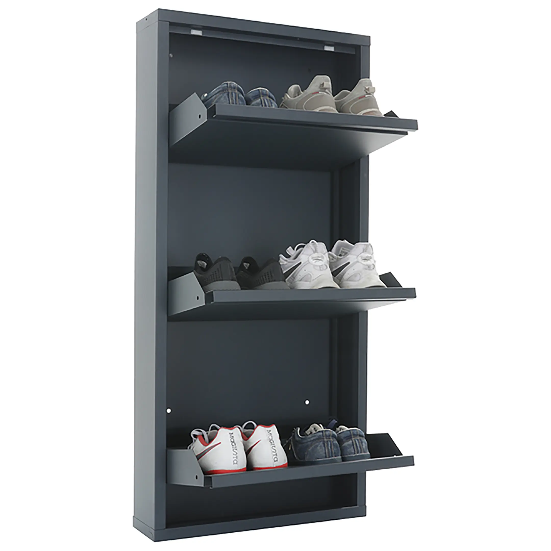 - Открытые полки для быстрого доступа и вентиляции — конструкция обеспечивает моментальный доступ к любой паре обуви и способствует естественной циркуляции воздуха, что позволяет обуви проветриваться и сохнуть.