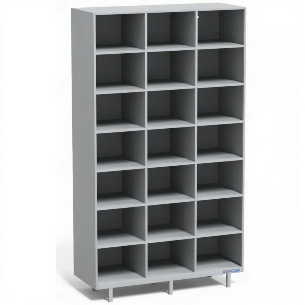 - Удобство использования — ячейки спроектированы для легкого доступа: часто имеют наклонную полку или бортик, предотвращающий выпадение обуви, и обеспечивают базовую вентиляцию.