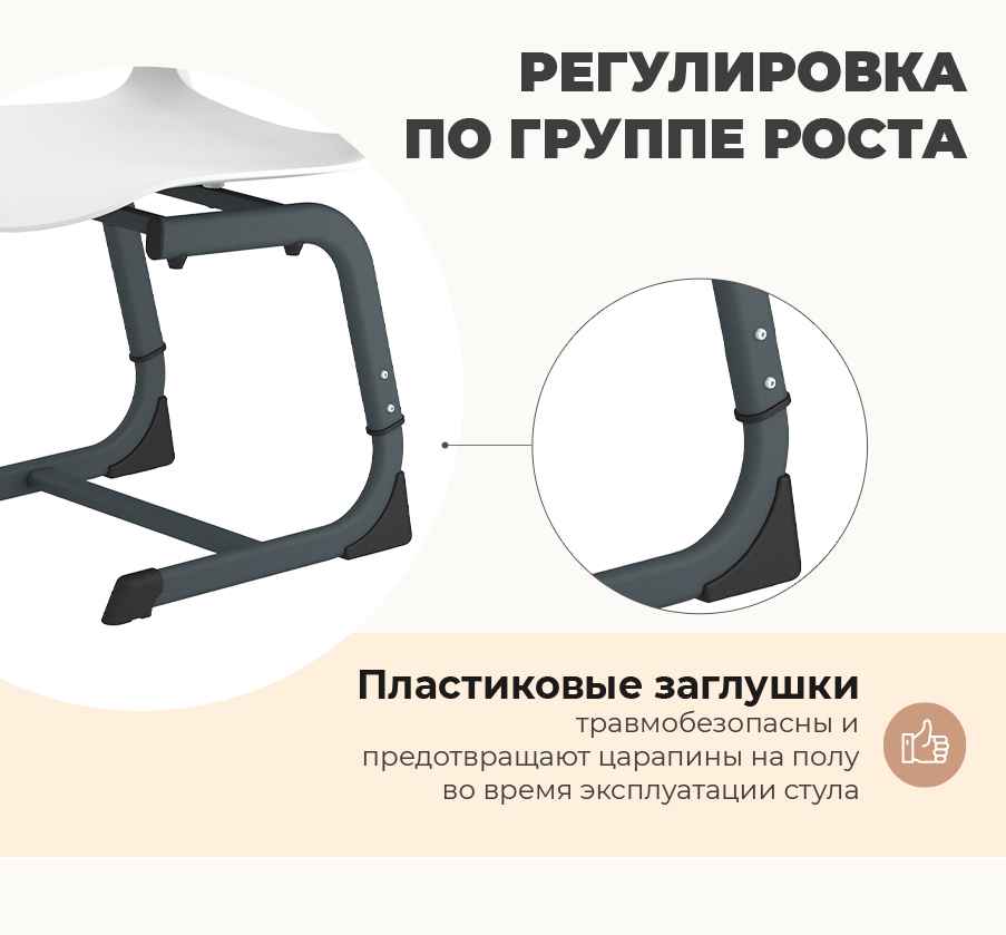 • Пластиковое сиденье и спинка — прочные, влагостойкие и лёгкие в уходе, не требуют дополнительного обслуживания.
