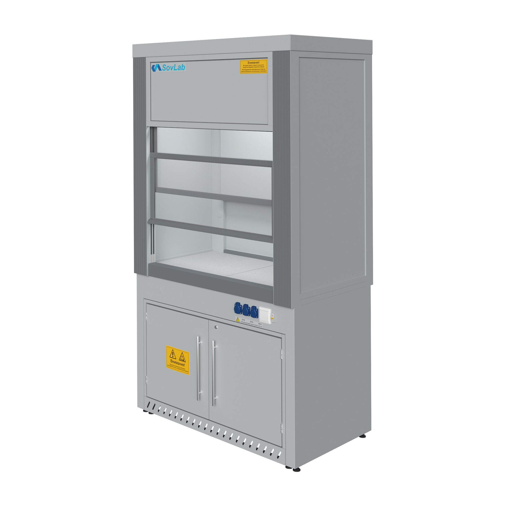 - Специализированная вытяжная система — эффективно удаляет пары легко воспламеняющихся и токсичных веществ, поддерживая безопасный микроклимат в лаборатории.