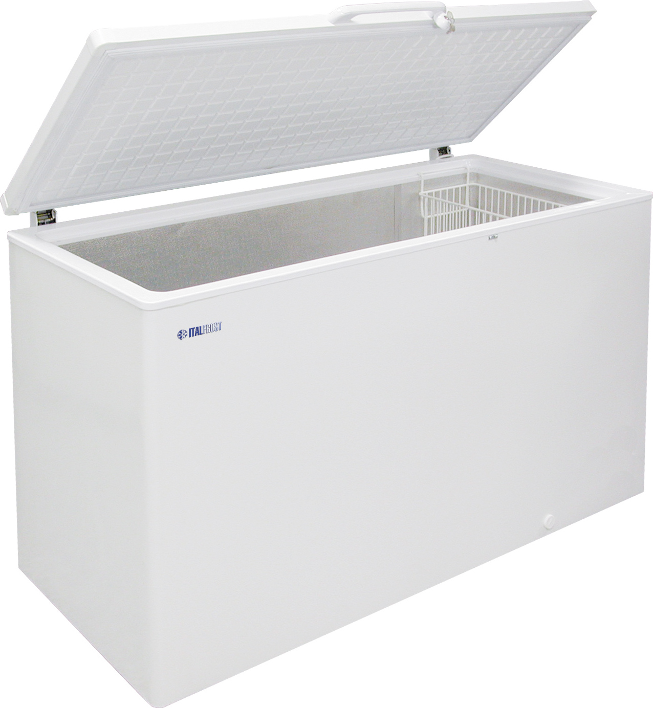 Особенности ларя морозильного CF 500S Энергосберегающий компрессор Electrolux Хладагент: хладон R134А Высокая загрузочная линия ларя: 680 мм Глухая крышка изготовлена из высококачественного морозостойкого пенополиуретана Эргономичная ручка изготовлена методом литья из пластика Корпус ларя выполнен из оцинкованной стали с пенополиуретановой теплоизоляцией В комплекте: надежный замок Корзины в комплект не входят Описание ларя морозильного CF 500S Морозильный ларь ITALFROST CF 500S используется на складах предприятий торговли и в сфере общественного питания для заморозки и хранения товарного запаса и ингредиентов блюд. Ларь поддерживает температурный режим от -25 °C до -18 °C, внутренний (полезный) объем камеры составляет 485 литров. CF 500S — достаточно миниатюрная модель, подходящая для установки даже на ограниченной площади.