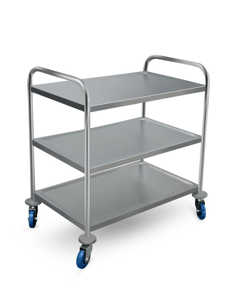 Сервировочная тележка с тремя уровнями [TR-3L, PR-3L] подойдет для предприятий питания любого размера и формата, начиная от столовых самообслуживания и закачивая элитными ресторанами. Также оборудование полезно в гостиничном бизнесе, если предусмотрена доставка в номера.
