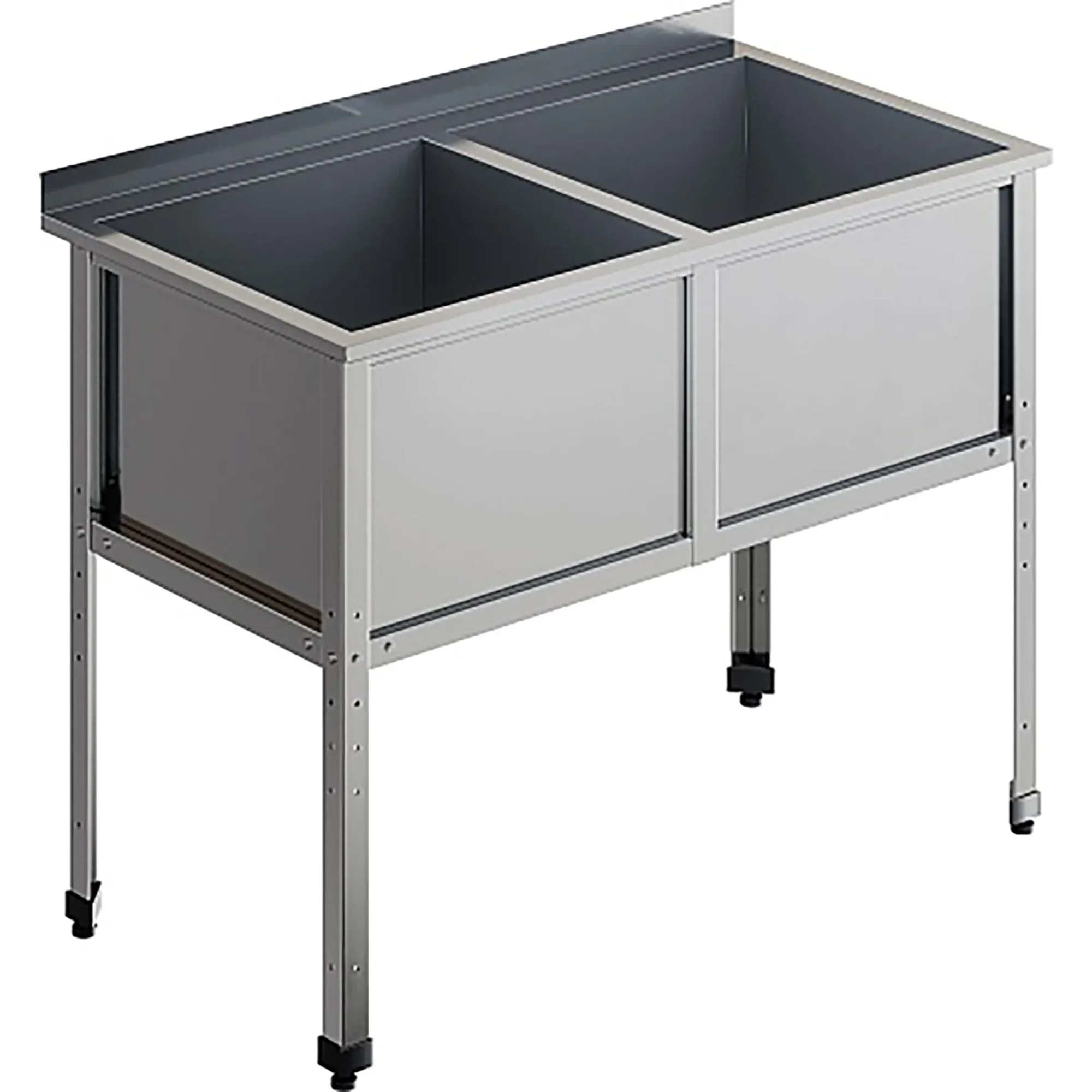 Ванна моечная двухсекционная с бортом ВМС-2/5-Б-ЭК разработана для применения в моечных отделениях предприятий общепита и торговли различного формата, пищевых производств и пищеблоков для мытья посуды, кухонного инвентаря, продуктов питания и рук персонала.