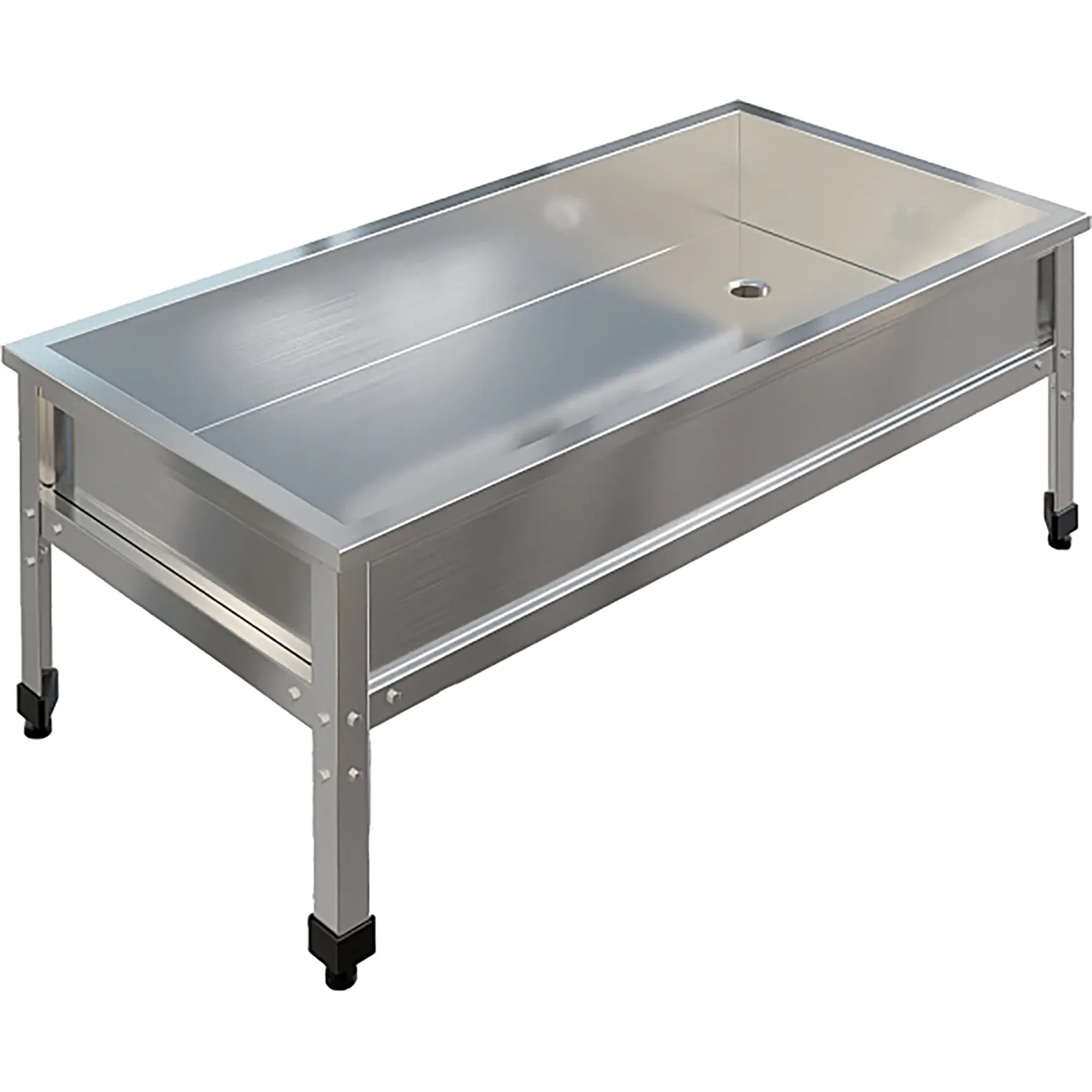 Ванна моечная низкая ВМСН-12/6/4-ЭЦ разработана для применения в производственных и моечных отделениях предприятий общепита и торговли различного формата, пищевых производств и пищеблоков для мытья и дезинфекции уборочного инвентаря, посуды и кухонных принадлежностей.