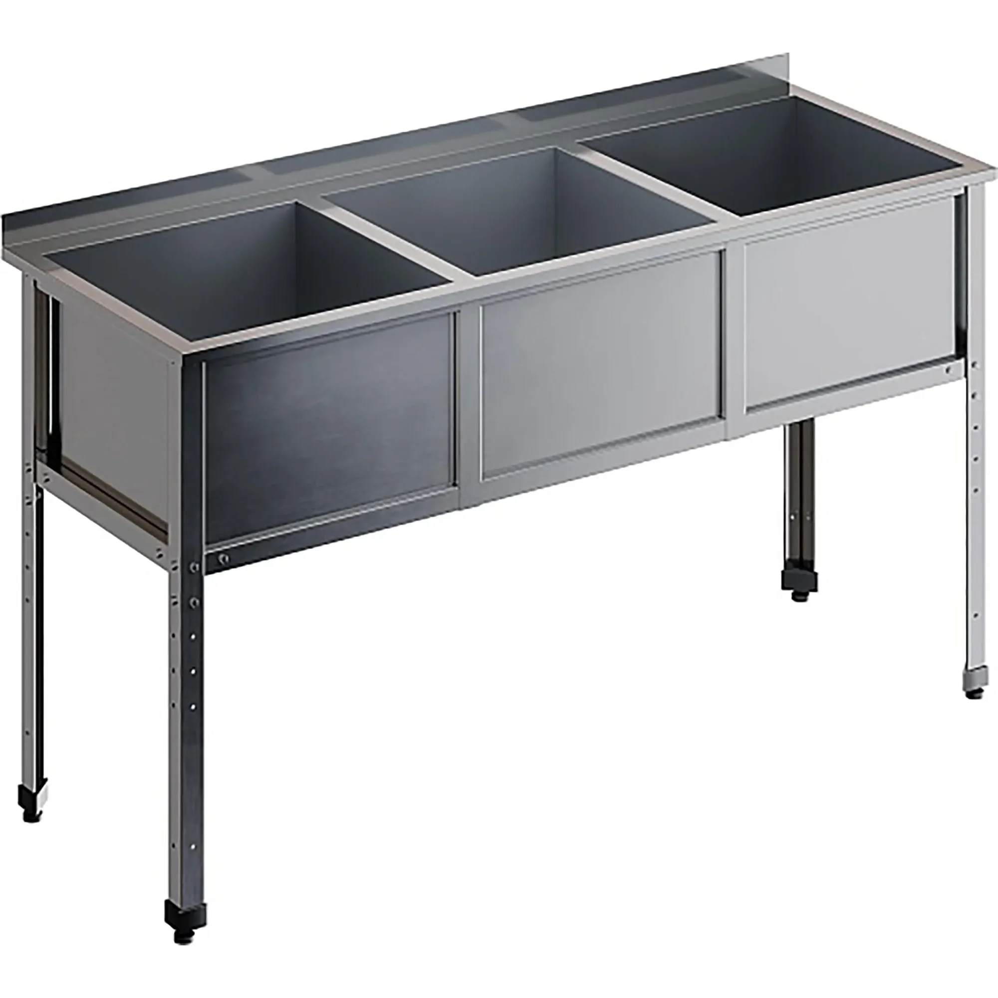 Ванна моечная трехсекционная с бортом ВМС-3/7-Б-ЭЦ разработана для применения в моечных отделениях предприятий общепита и торговли различного формата, пищевых производств и пищеблоков для мытья посуды, кухонного инвентаря, продуктов питания и рук персонала.