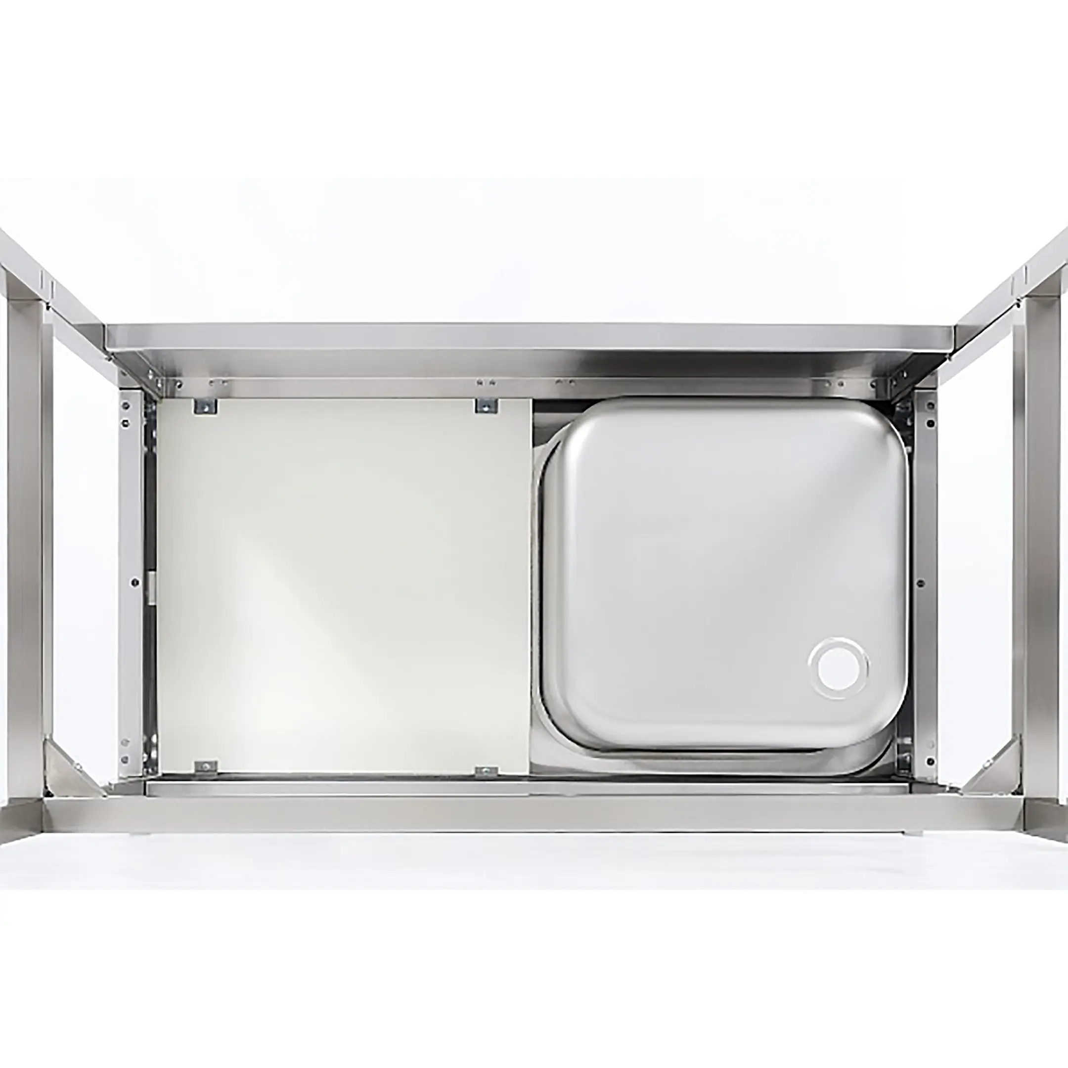 • фартук с 3-х сторон из нержавеющей стали;