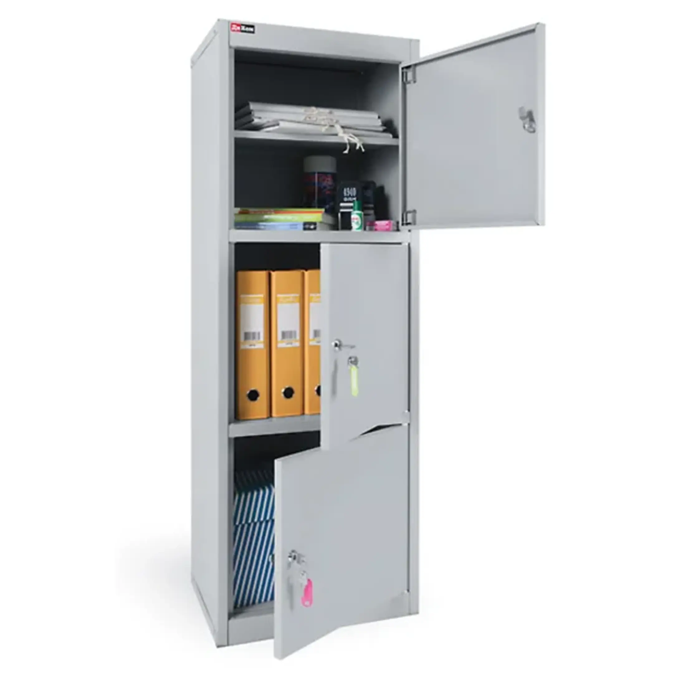 - Максимальная универсальность и свобода планирования — полностью свободное внутреннее пространство без стационарных полок позволяет хранить предметы любого размера и формы: от крупного оборудования и техники до спортивного инвентаря, коробов, спецодежды и хозяйственных принадлежностей, что делает шкаф идеальным решением для разнородных задач хранения.
