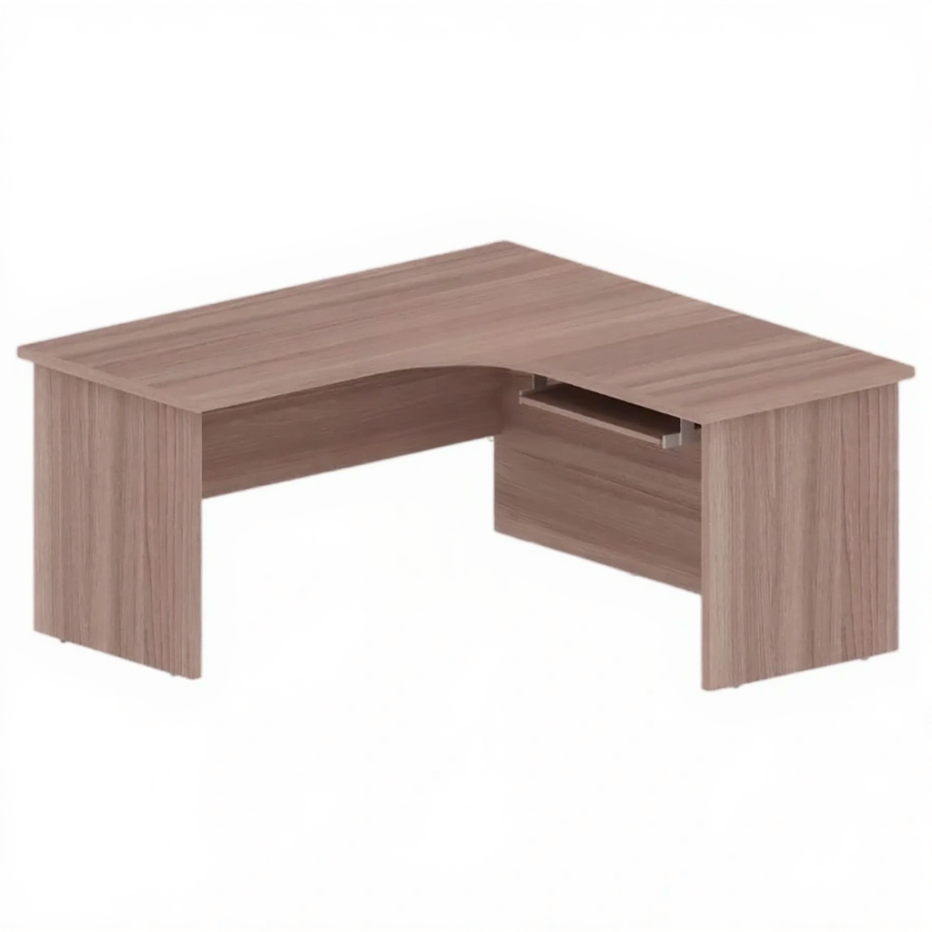 Стол письменный угловой ОФ-СТ-184, Ясень Шимо Темный — это элегантное рабочее место с угловой конструкцией для организации комфортных рабочих зон в офисах, административных учреждениях и учебных заведениях. Угловая форма стола позволяет оптимально использовать пространство помещения, предоставляя просторную рабочую поверхность. Благородная текстура "Ясень Шимо Темный" с выразительным контрастным рисунком создает солидную и стильную атмосферу, идеально подходящую для современных интерьеров с требованием к эстетике.