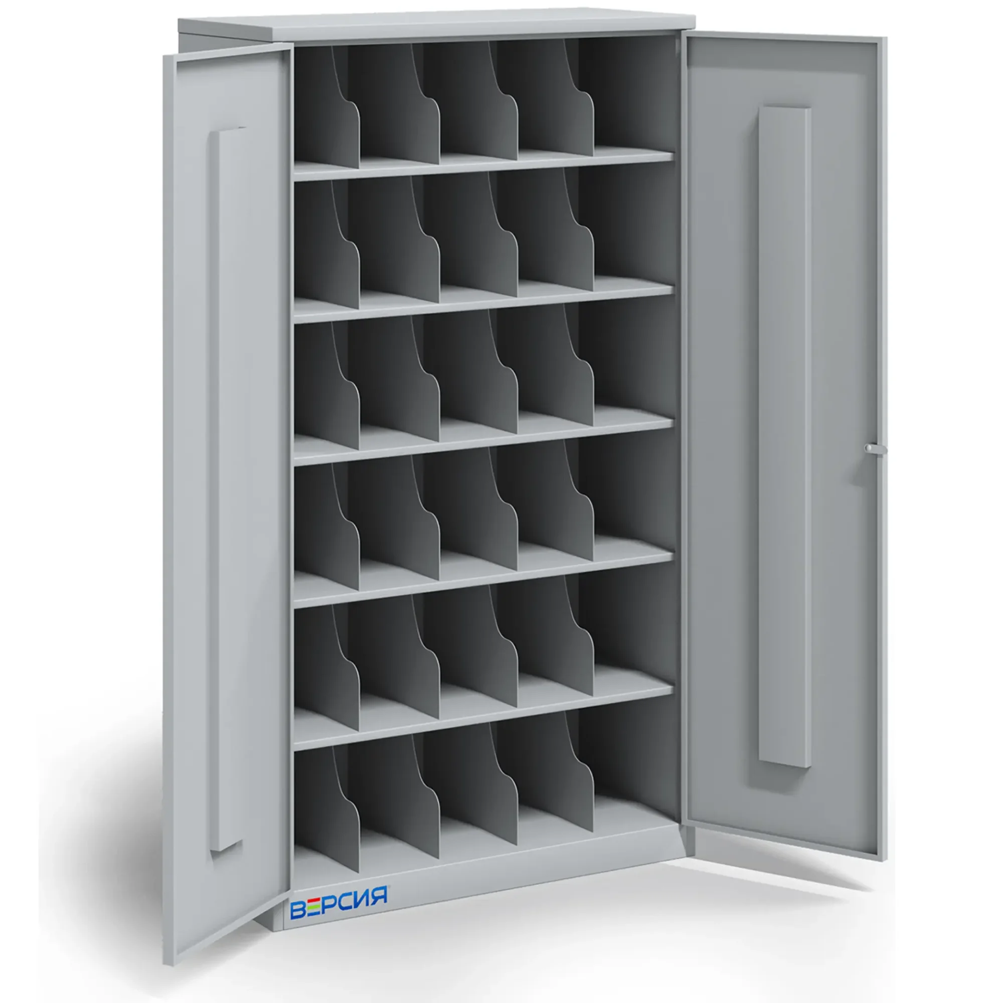 • 30 ячеек, две дверцы, скошенные полки для удобства хранения СИЗ.