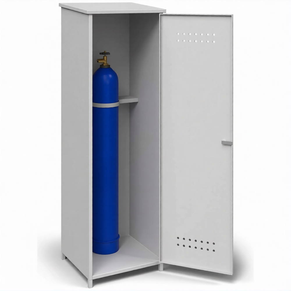 - Максимальная прочность и несущая способность за счет сварной конструкции — все основные силовые элементы этого шкафа соединены методом сварки, образуя монолитный, исключительно жесткий и прочный корпус. Такая конструкция гарантированно выдерживает значительный вес полного 40-литрового баллона (до 80 кг и более), исключает деформацию, перекосы и обеспечивает абсолютную устойчивость даже при случайном ударе или в условиях вибрации.