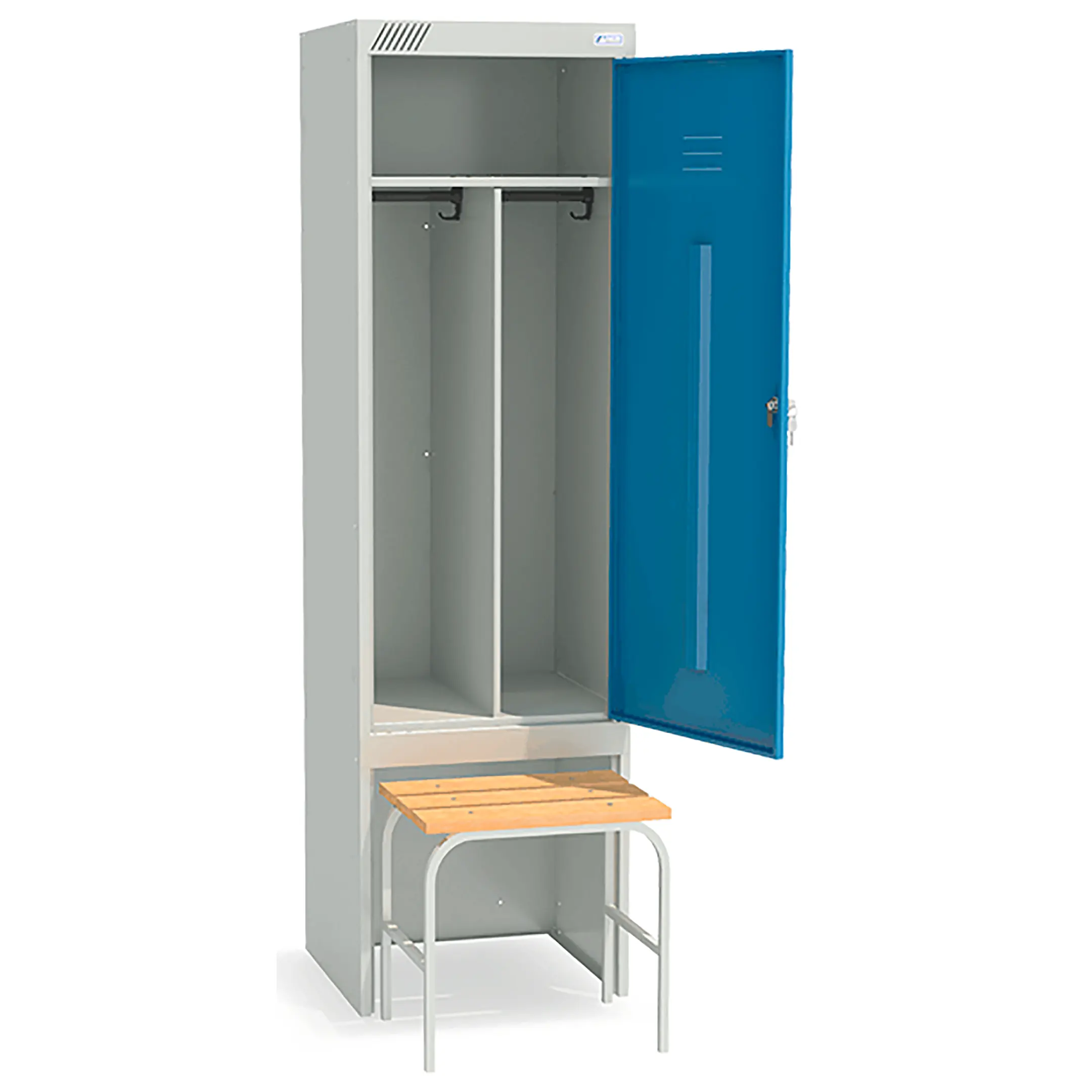 Обратите внимание - данный шкаф поставляется окрашенным в серый цвет. Шкаф с синими дверцами можно приобрести под заказ (сроки доставки уточняйте у менеджера).