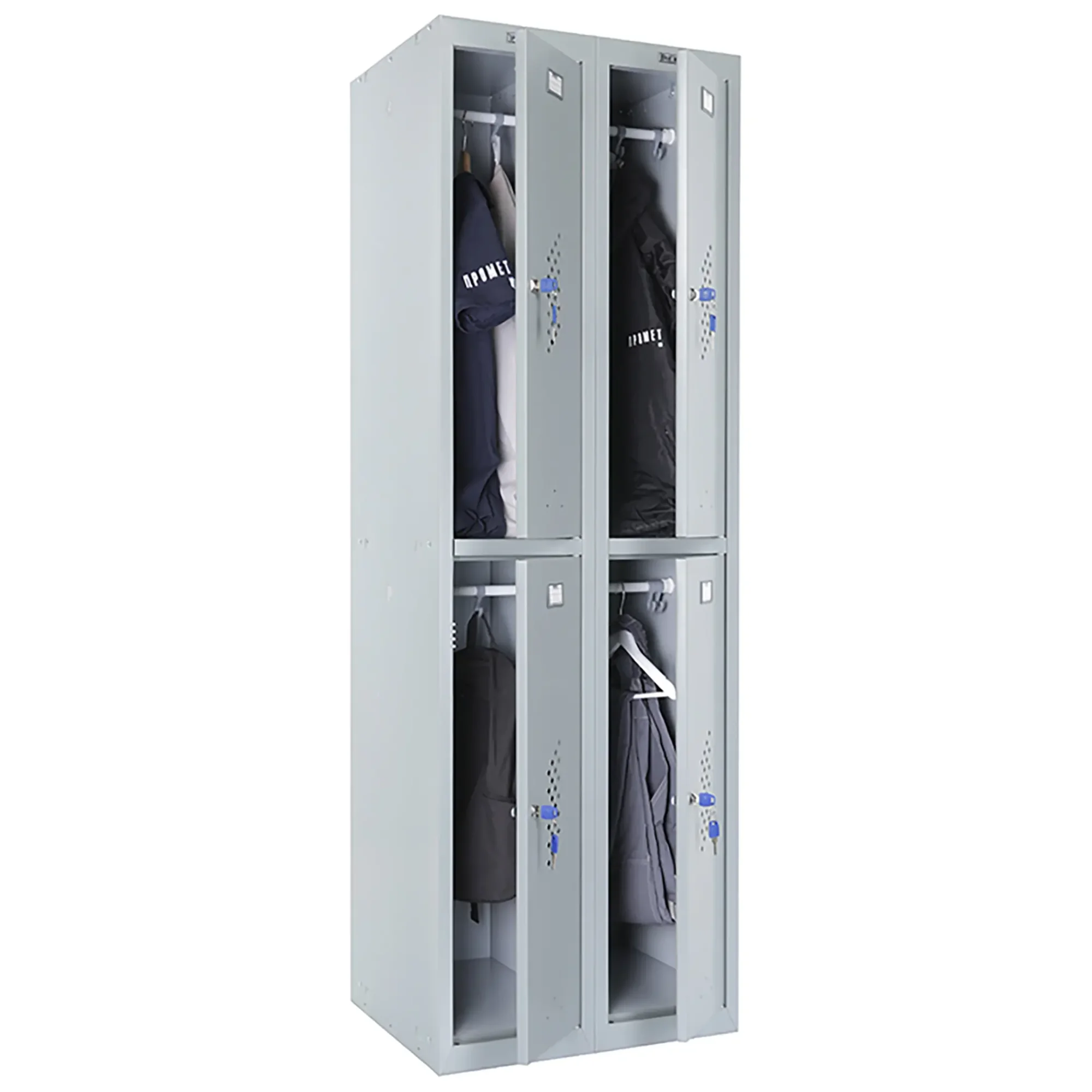 - опции (под заказ, уточняйте у менеджера): замком PL*** (вместо ключевого замка устанавливается бесключевой замок Euro-locks A129 с устройством под навесной замок), кодовый механический или кодовый электронный (по запросу), для камер хранения или фитнес центров; полка под обувь, подставка или скамья-подставка под шкаф, наклонная крыша
