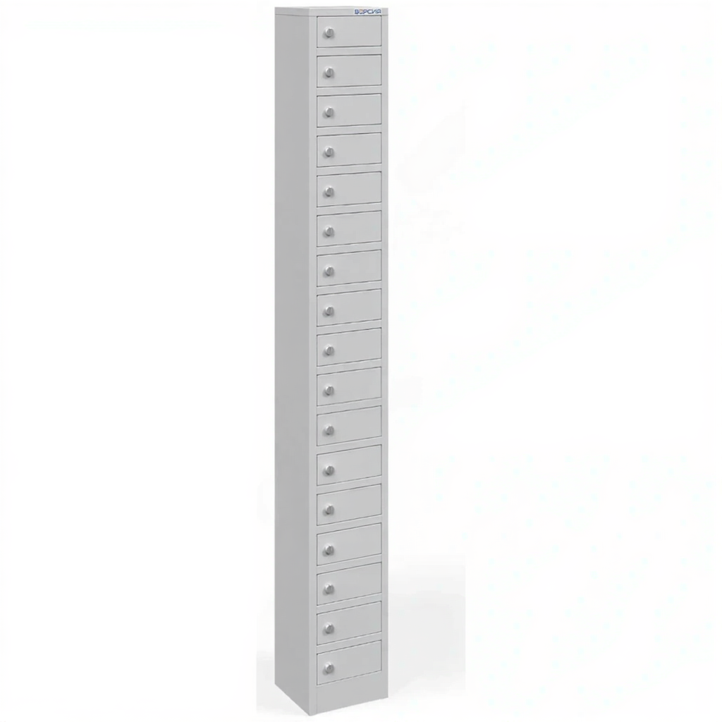 - Оптимальная компактность и вместимость — шкаф предоставляет 17 индивидуальных запирающихся ячеек, что соответствует численности малой учебной группы, отдела или спортивной команды. Его небольшие габариты позволяют удобно разместить оборудование даже в помещениях с ограниченной площадью, не загромождая пространство.
