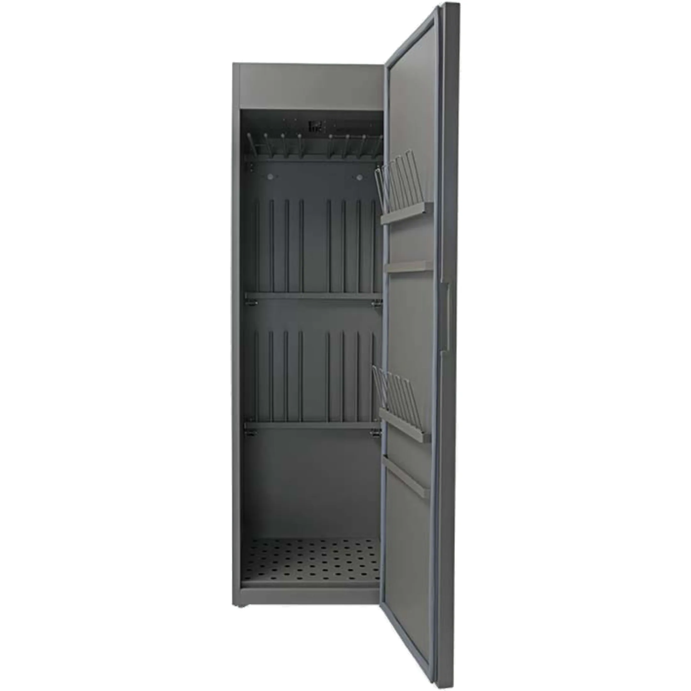 - Эффективная и быстрая сушка — шкаф обеспечивает равномерную циркуляцию теплого воздуха по всему внутреннему объему, что позволяет быстро и качественно просушивать одежду, обувь и инвентарь, сокращая время их готовности к повторному использованию.
