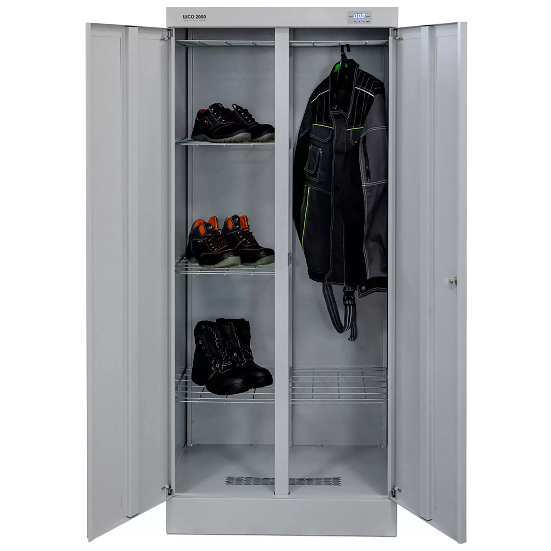 Шкаф сушильный ШСО-2000Н — это производительное и надежное оборудование для эффективной сушки рабочей и спортивной одежды, спецодежды, обуви, белья и инвентаря на предприятиях, в медицинских, спортивных учреждениях, гостиницах и учебных заведениях. Модель обеспечивает быструю, равномерную сушку благодаря циркуляции теплого воздуха, способствуя устранению влаги, запахов и поддержанию гигиены.