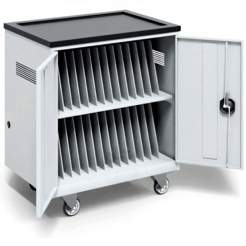 - Максимальная защита и сохранность техники — прочный стальной корпус с надежными запирающимися дверцами защищает дорогостоящие ноутбуки от кражи, повреждений и несанкционированного доступа. Индивидуальные отсеки предотвращают повреждение устройств при транспортировке.
